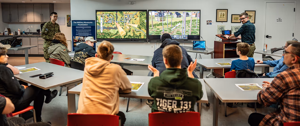 Augmenting the simulation, we use physical maps and artifacts to explore the scenario and its historical context for Calgarians and the wider war.