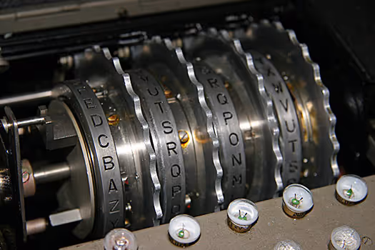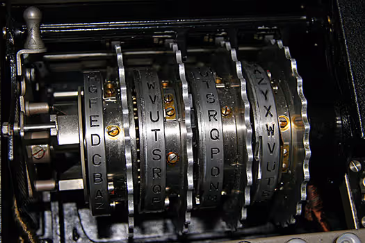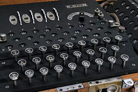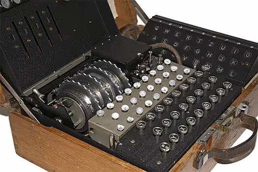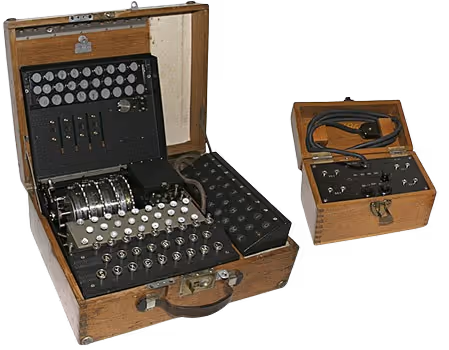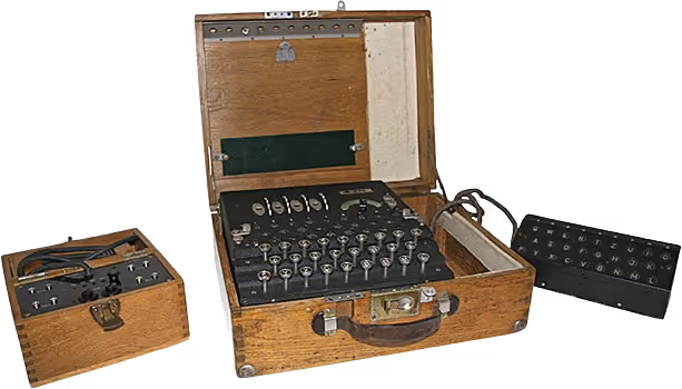 This machine looks like a briefcase full of gears, keys, and other mechanisms. It was first invented in 1918 and was used by Germans to encode and decode vital information and coordinate U-boat attacks.