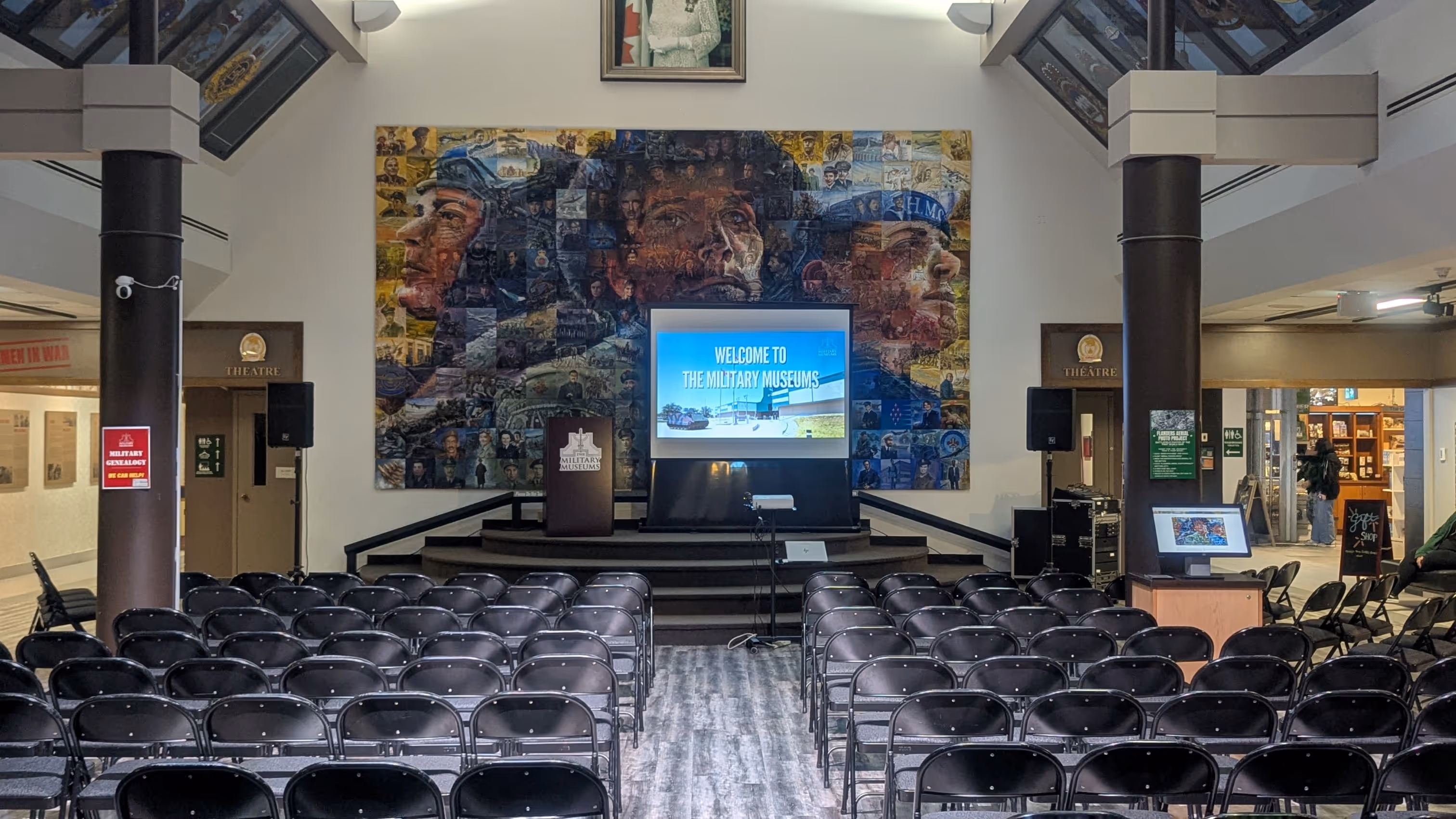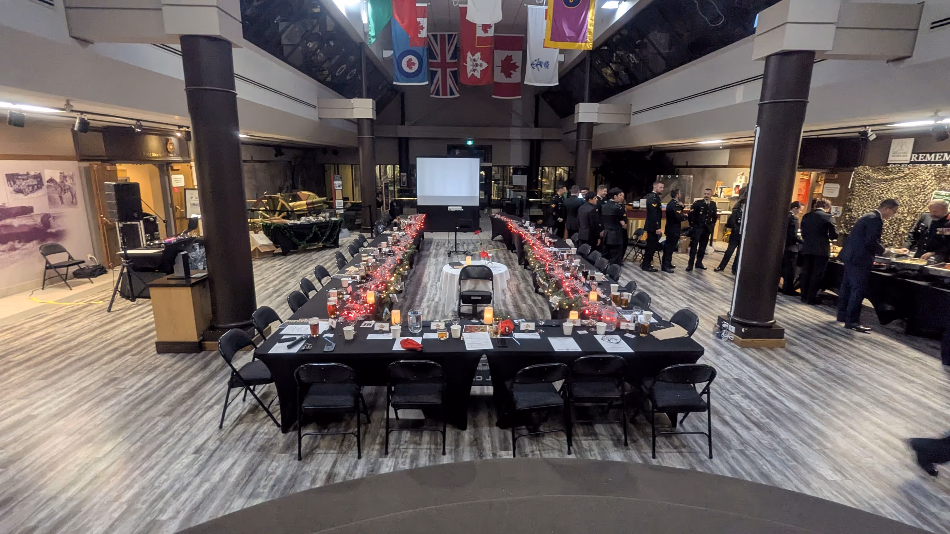 Located just inside the main entrance to The Military Museums, the Queen Elizabeth II Atrium offers a refined and versatile indoor setting for private events. Framed by regimental flags, gallery spaces, and striking military artefacts, the Atrium provides an atmosphere that is both welcoming and steeped in Canadian military heritage.