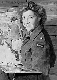 She joined the Canadian Women's Army Corps (CWAC) in 1942 rose to Lieutenant and became the first official female War Artist with the Canadian Army in Europe, 1945-46. She married fellow war artist Bruno Bobak in 1945. They have two children, Alexander (1946) and Anny (1957).